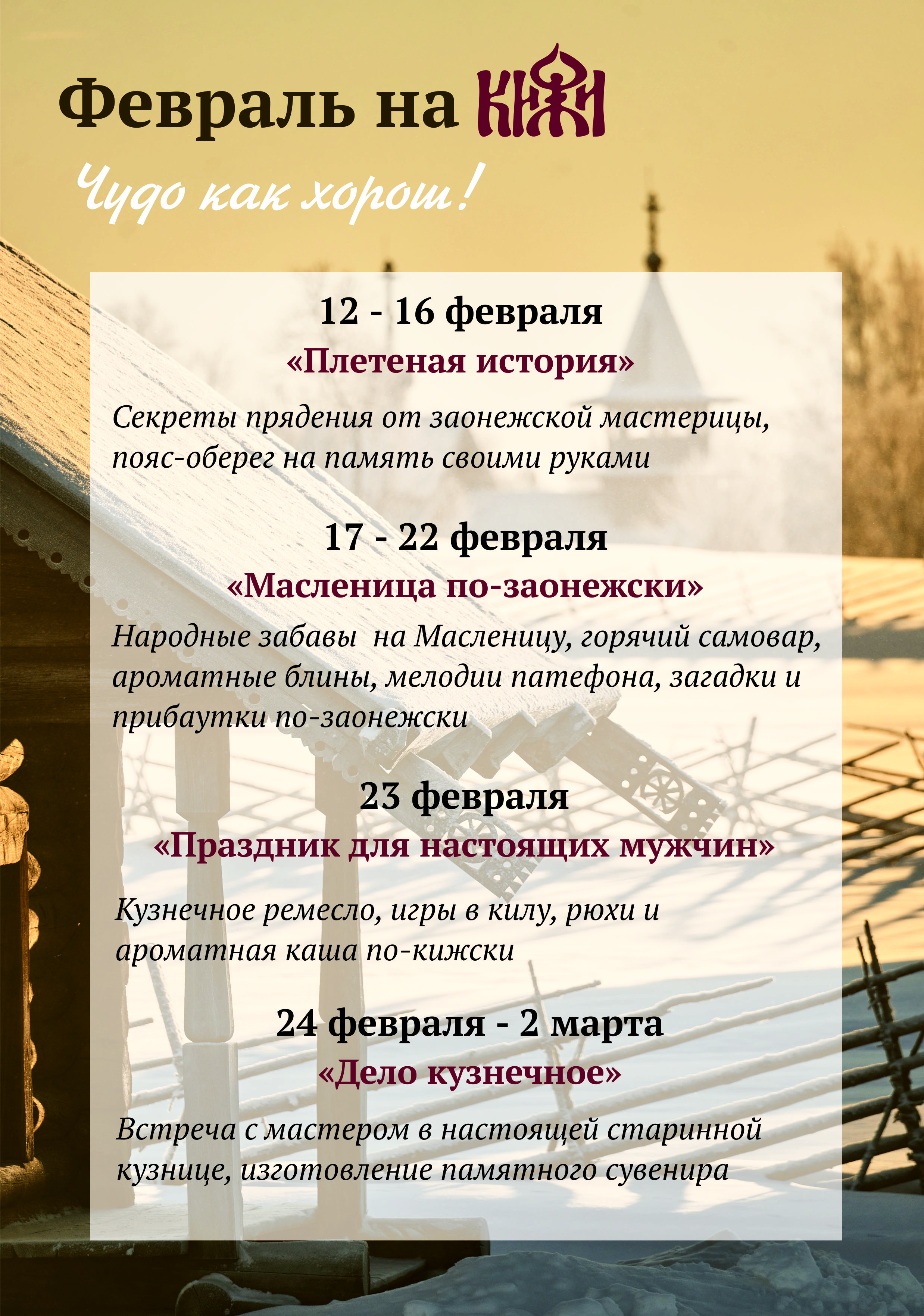 Февраль на острове Кижи — время живых ремёсел и новых открытий