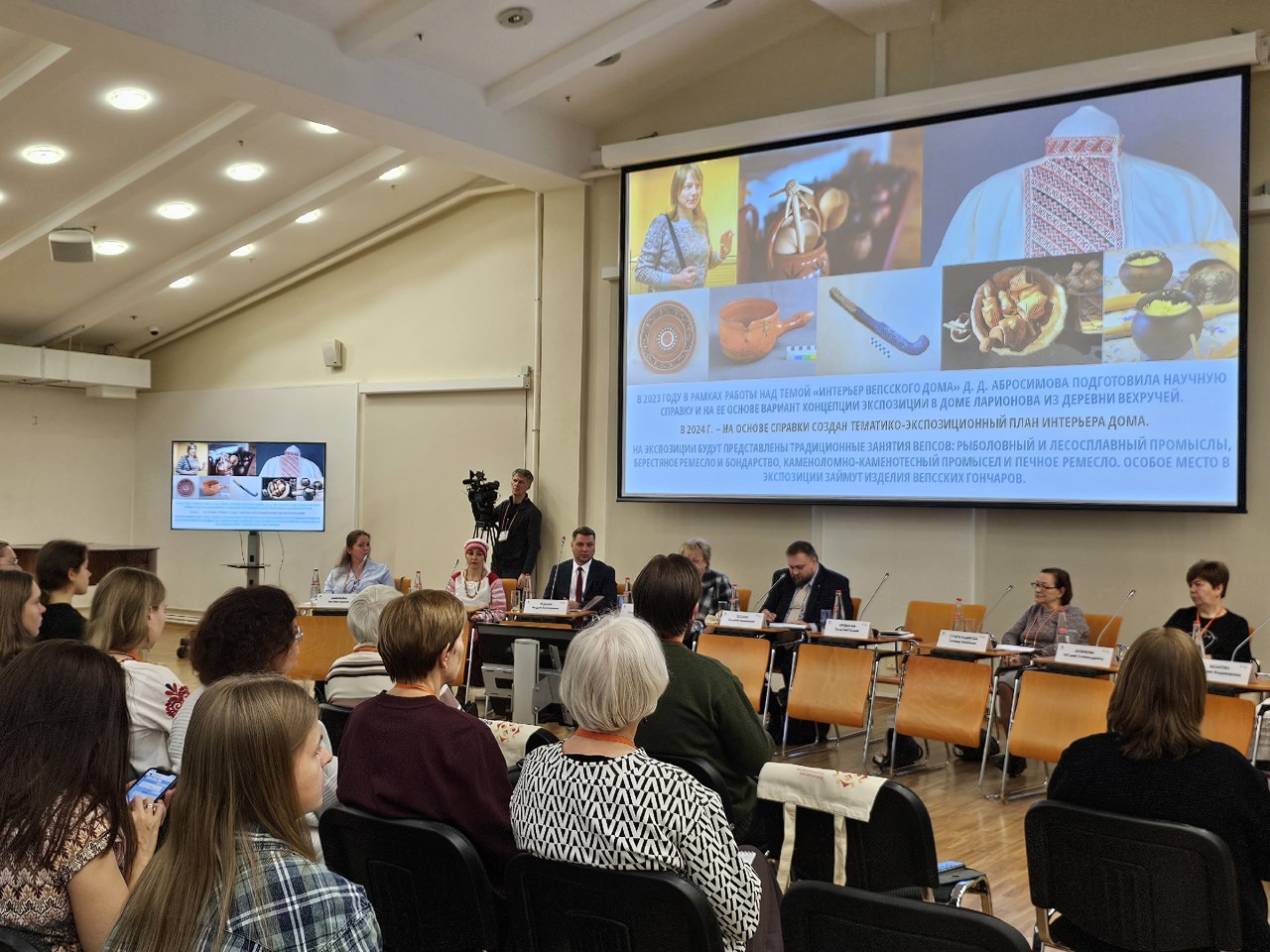 Опыт музея-заповедника «Кижи» в сохранении вепсских культурных традиций представила Елена Богданова, директор музея: «Одной из важнейших задач музея является завершение формирования сектора «Прионежские вепсы». В 1980-е годы в северную часть острова были перевезены амбар Беляева из деревни Матвеева Сельга, баня Фошкиной из деревни Каскесручей, амбар Ждановой из деревни Каскесручей, а затем формирование сектора приостановилось. В 2022 году музей приобрел дом Ларионова из деревни Вехручей. Сейчас команда музея при поддержке партнеров работает над темой «Воссоздание интерьера вепсского дома», включая экспозиционное решение, где будут представлены традиционные занятия вепсов».