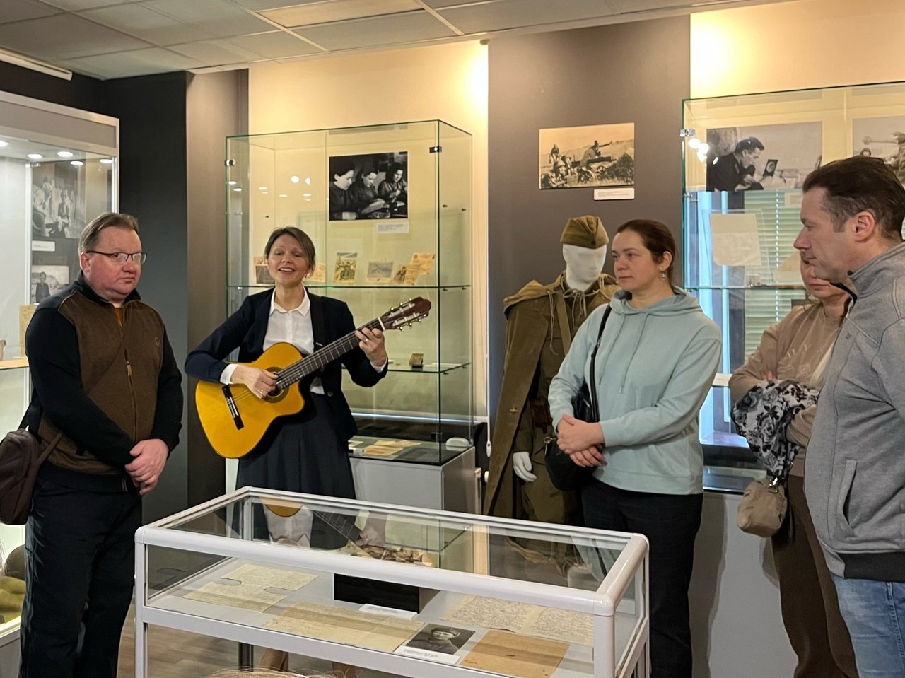 «Я хочу, чтобы слышала ты, как тоскует мой голос живой» — особую, интимную тональность открытию выставки «Письма с фронта» задала песня «Землянка», исполненная под гитару Анной Може, научным сотрудником музея «Кижи», куратором экспозиции