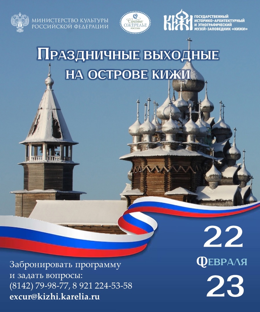 Экскурсионный отдел на острове Кижи — (8142) 53-57-22 (лето), (8142) 79-98-77 (зима).
