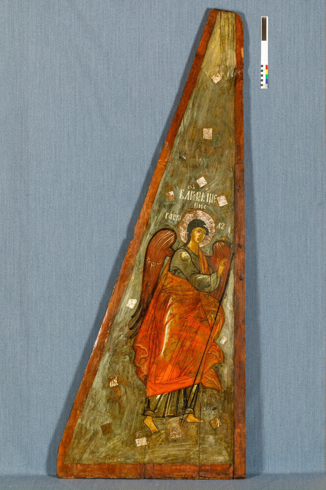Одна из самых значимых — икона «Благовещение» из праздничного ряда иконостаса церкви Преображения Господня на острове Кижи, датированная первой четвертью XVIII века.