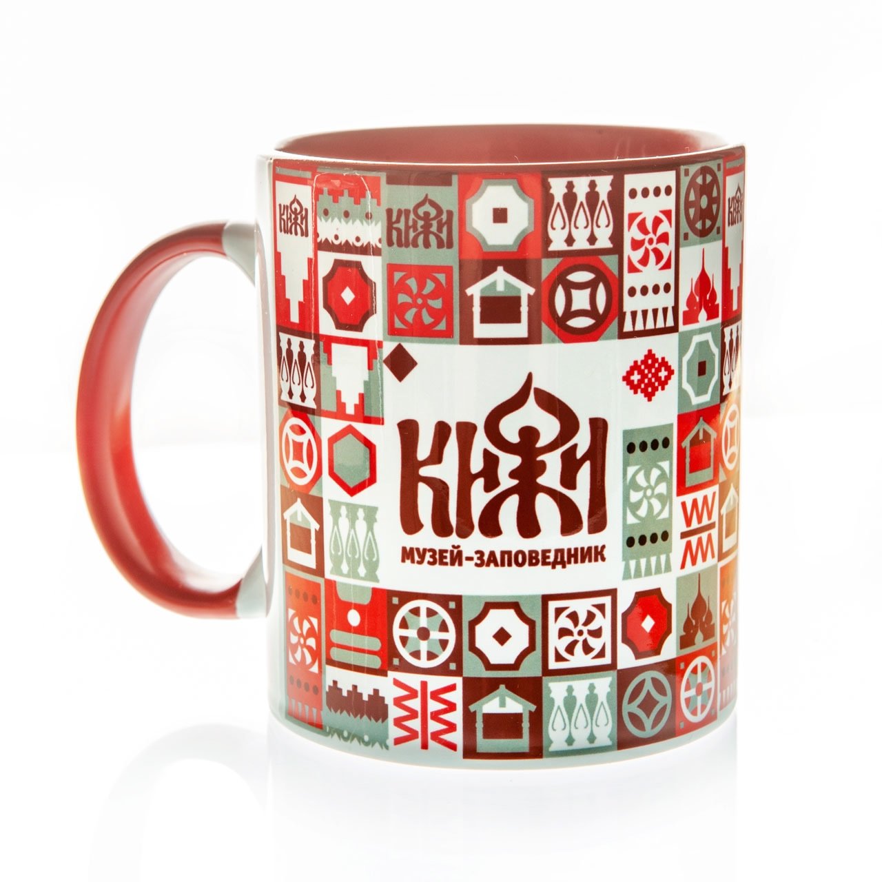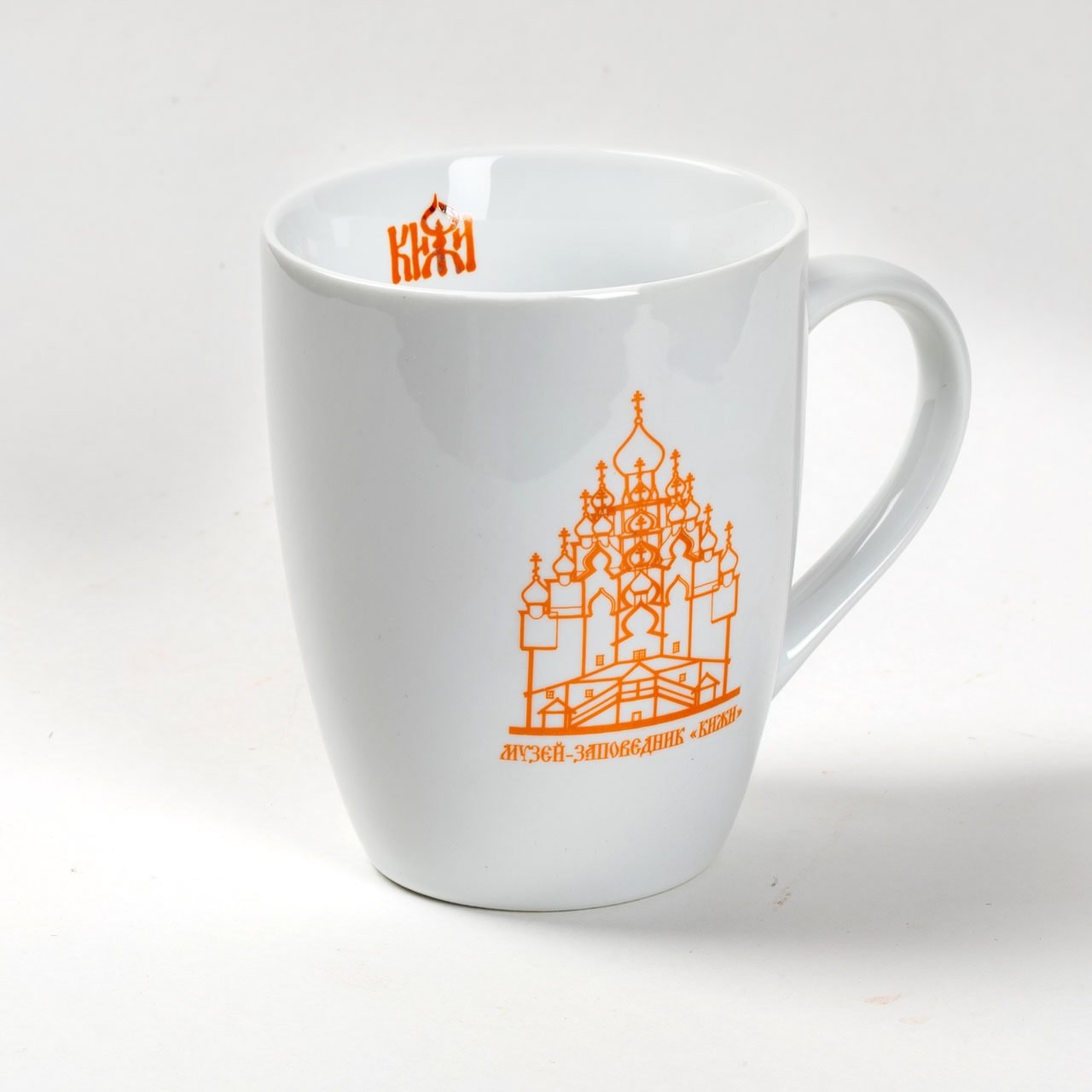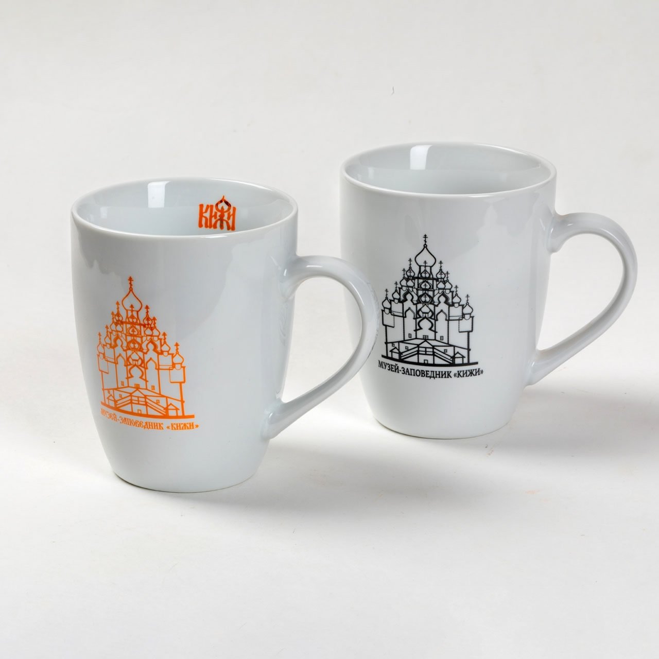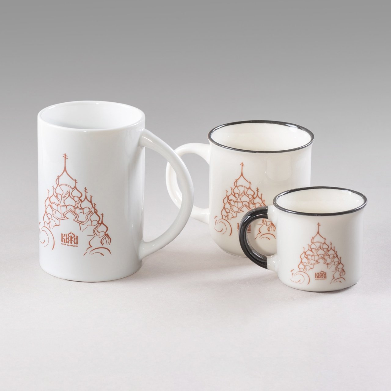 Музейный сувенирный магазин «Кижи» предлагает чашечки с кижской символикой.