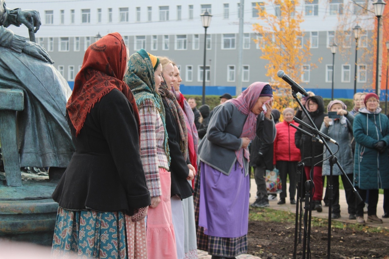 4 ноября в Иссерсоновском сквере, находящемся рядом с улицей, носящей имя Ирины Федосовой, торжественно открыли памятник выдающейся заонежской сказительнице и плакальщице XIX века.