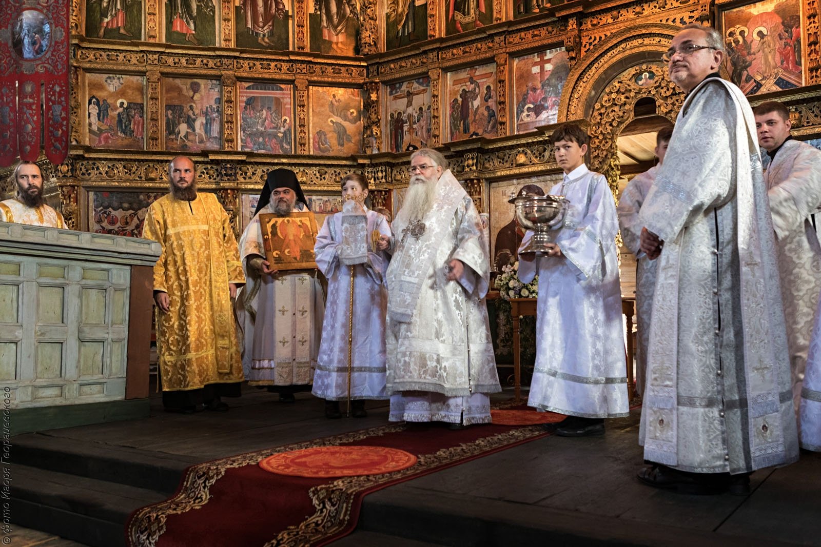 Особо хочется отметить, что благодаря вашему труду стало возможным долгожданное возвращение молитвы на богоспасаемый остров Кижи. Историческое событие — великое освящение Преображенской церкви и первая за столетие Божественная литургия, совершенная 19 августа 2021 года в день Преображения Господня, — стало возможным именно благодаря вашей многолетней заботе о сохранении этого святого места. Вы вложили в его возрождение частицу своей души, и теперь храм вновь ожил и как величайший памятник культуры, и как дом молитвы.