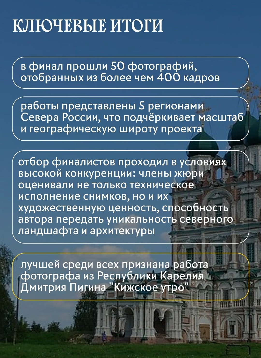 «Автор смог так передать атмосферу Кижей, что каждый из членов жюри оказался в восторге!» — пишут организаторы конкурса.