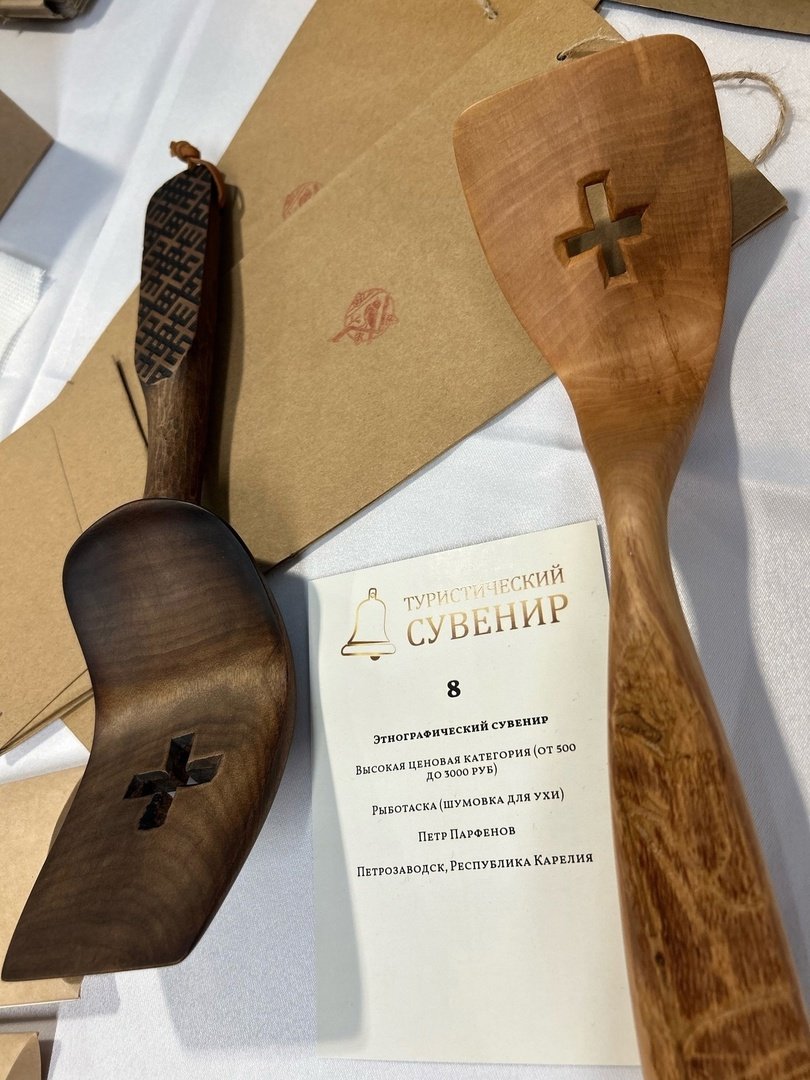 Среди победителей – мастер «Ожившей экспозиции» на острове Кижи Петр Парфенов – его рыботаска заняла 3 место в номинации «Этнографический сувенир».