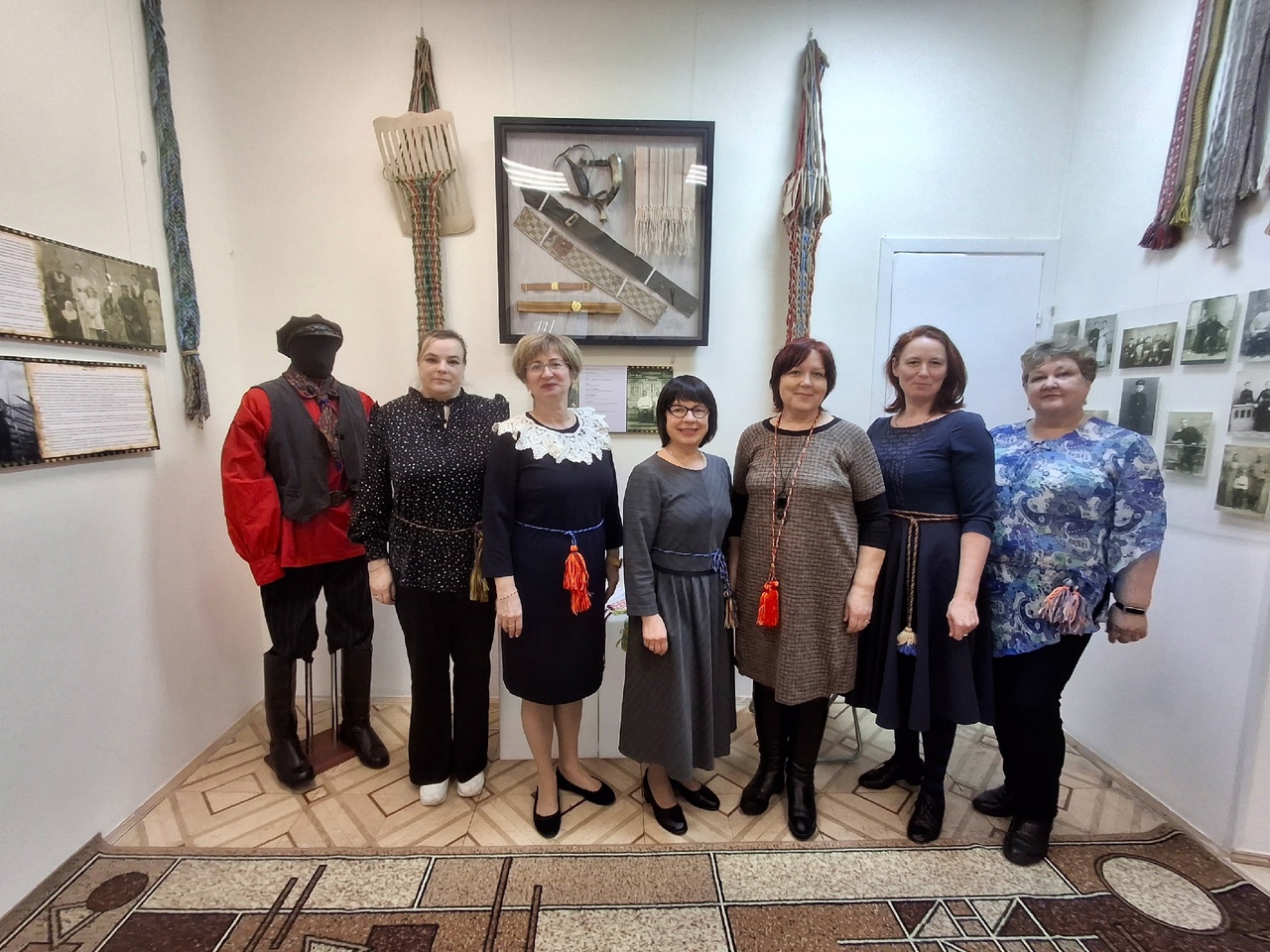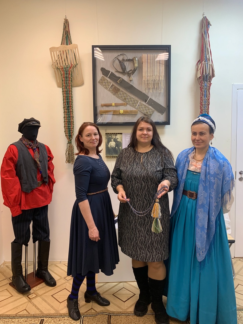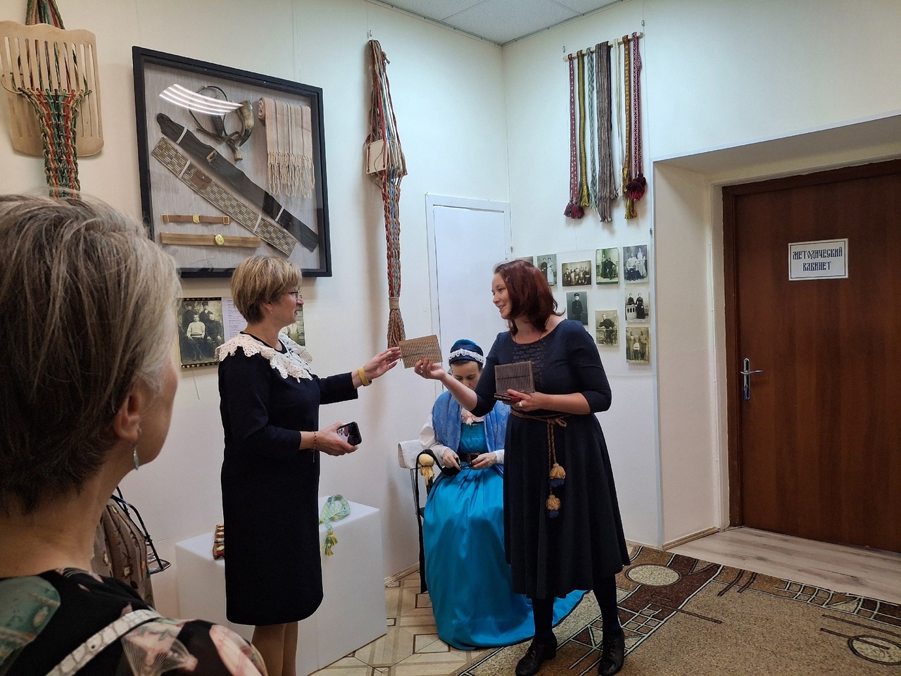 С интересом рассматривали гости экспонаты, множество фотографий, разнообразные приспособления для плетения - маленькие деревянные дощечки — станочки, бердо, челнок.