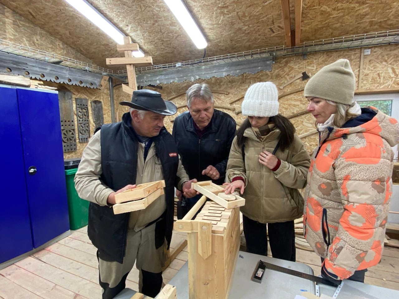 Заведующая музеем Надежда Ляхова и художник Сергей Петелько побывали на выставках и в хранилищах фондовых коллекций, в реставрационных мастерских и в Детском музейном центре, в Плотницком центре и во Всероссийском центре сохранения деревянного зодчества им. В.С. Рахманова, научились печь калитки.