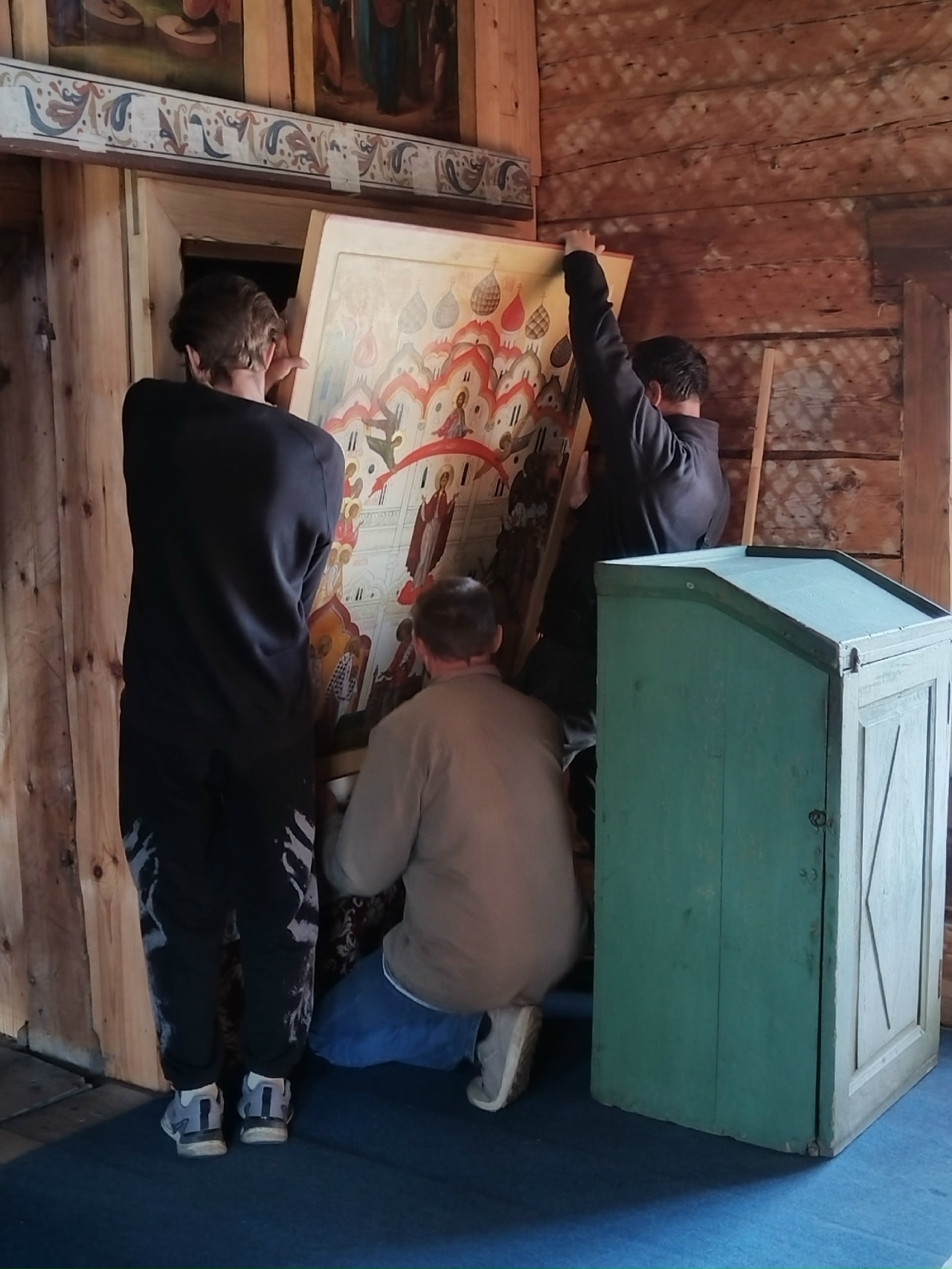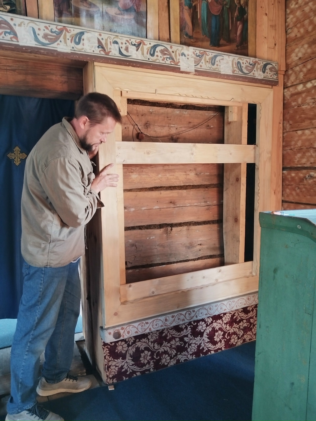 Летом этого года реставратор музея «Кижи» Михаил Фролов изготовил деревянную раму для новой иконы.