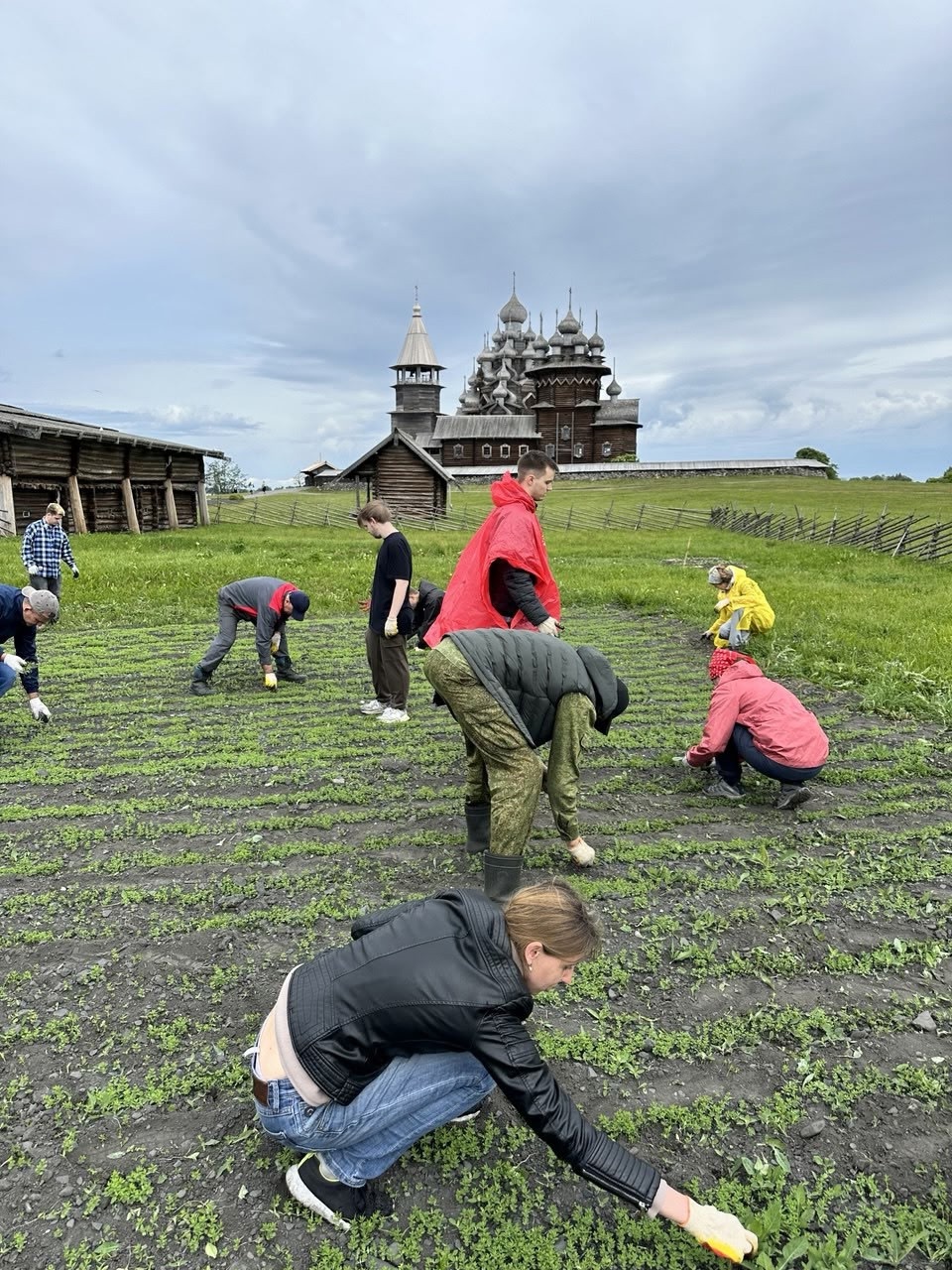 Сотрудники отдела природного наследия музея «Кижи» подготовили программу, в которой гармонично сочетаются практическое и культурное направление. Волонтеры программы выполняют сезонные работы на основной экспозиции музея и на огородах в исторической деревне Ямка: окучивание картофеля, прополка льна.