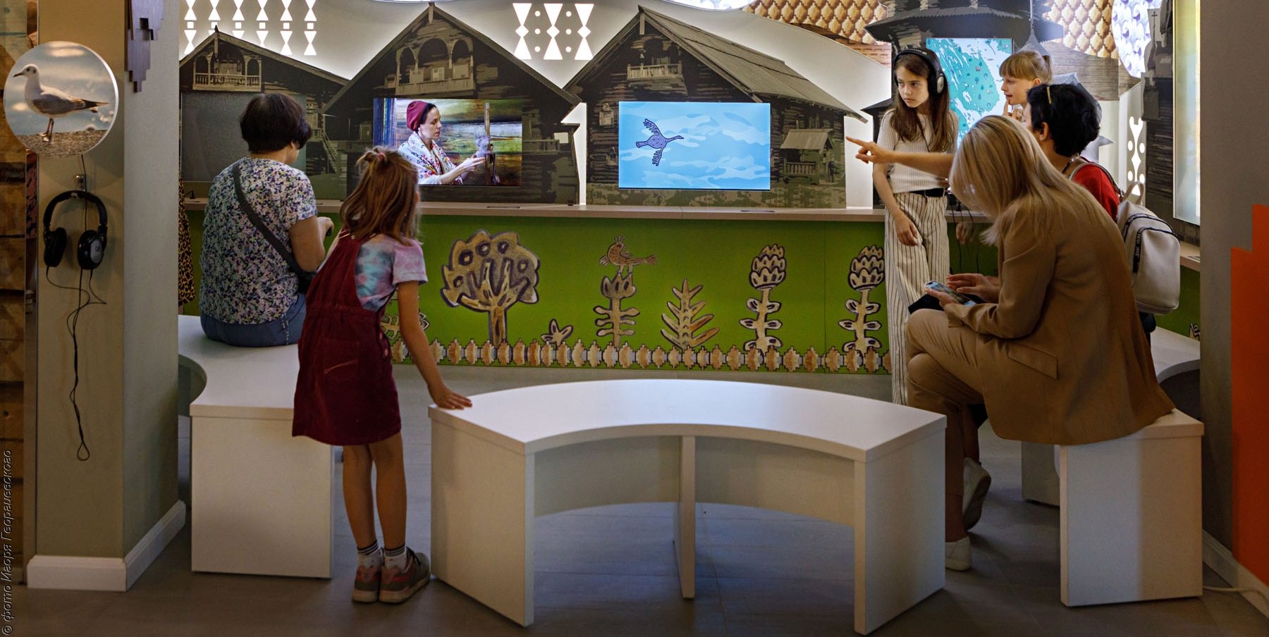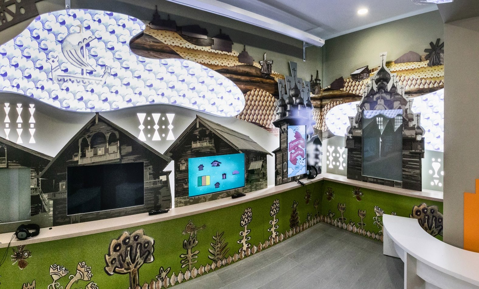 Во входной зоне создана выставка «Кижи. Медиапространство». С помощью современных мультимедийных средств можно совершить виртуальное путешествие в Заонежье, заглянуть в интерьеры храма Преображения Господня и крестьянского дома и посмотреть увлекательный мультфильм «Кижские истории». А также узнать о традиционных ремеслах «из первых уст» — от мастеров музея «Кижи» и поиграть в компьютерную игру «Проживи год на острове Кижи».