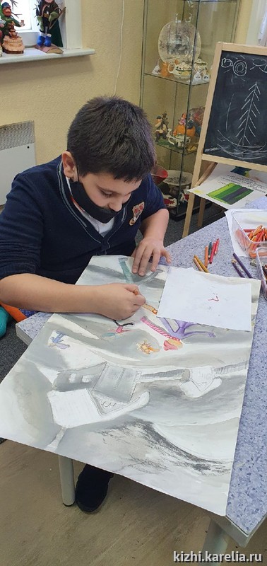 Создана в 2005 году в структуре Детского музейного центра музея-заповедника «Кижи». Руководитель студии — художник-педагог Светлана Петрякова. Студия расположена в квартале исторической застройки в старинном доме Лазарева, имеет свое арт-пространство в Музейном дворике. На занятиях дети не только увлеченно осваивают живописные техники или приемы работы с глиной, но и посещают экспозиции в выставочных залах и в фондохранилище музея «Кижи» в Петрозаводске. В летний период студийцы выезжают на творческую практику — пленэр на острове Кижи. Впечатления об острове, памятниках деревянного зодчества, предметном мире традиционной культуры, о природе Заонежья отражаются в рисунках, инсталляциях, керамических изделиях, созданных детьми. По итогам работы организуются выставки в городе Петрозаводске и на острове Кижи.